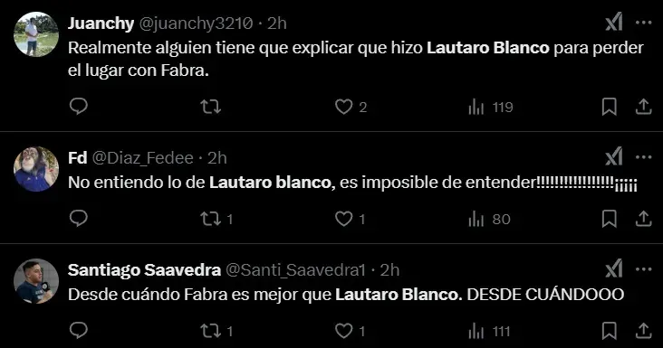 Sin embargo, el uruguayo y el colombiano no han logrado sacar grandes diferencias con sus actuaciones. Y ahora, con una nueva derrota, los hinchas volvieron a pedir a Blanco en el equipo titular. Sobre todo, por su gran nivel mostrado en la primera parte del 2024 y también por lo resistido que es Frank Fabra. Contra la Academia, el ex Elche ni siquiera concentró y así reaccionaron los hinchas: “No entiendo por qué no juega”, y “Desde cuando Fabra es mejor que Blanco”.