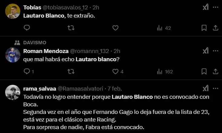 Los hinchas de Boca pidieron a Lautaro Blanco tras la derrota de Boca contra Racing