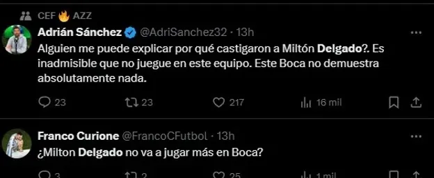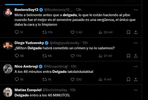 El nivel que mostró el cuadro de la Ribera en la Paternal no fue bueno. Y a partir de esto, hubo un nombre que varios hinchas Xeneizes pidieron para que juegue. Y que actualmente, es suplente con Russo: Milton Delgado.