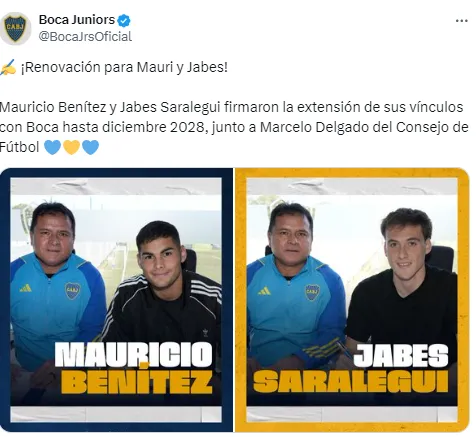 Boca blindó a 2 de los juveniles que vienen avanzando a paso firme en el 2024. Empezaron el año siendo piezas de relleno del plantel profesional pero enamoraron a Diego Martínez y ahora son primeras alternativas: Jabes Saralegui y Mauricio Benitez.