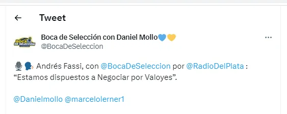 Andrés Fassi, presidente de Talleres, habló con Boca de Selección y aseguró: “Valoyes tiene contrato por tres años más y el 100% pertenece a Talleres. Las negociaciones tienen que ser dentro de las estándares que pretende la institución, estamos a disposición de poder negociarlo con Boca“, comenzó.