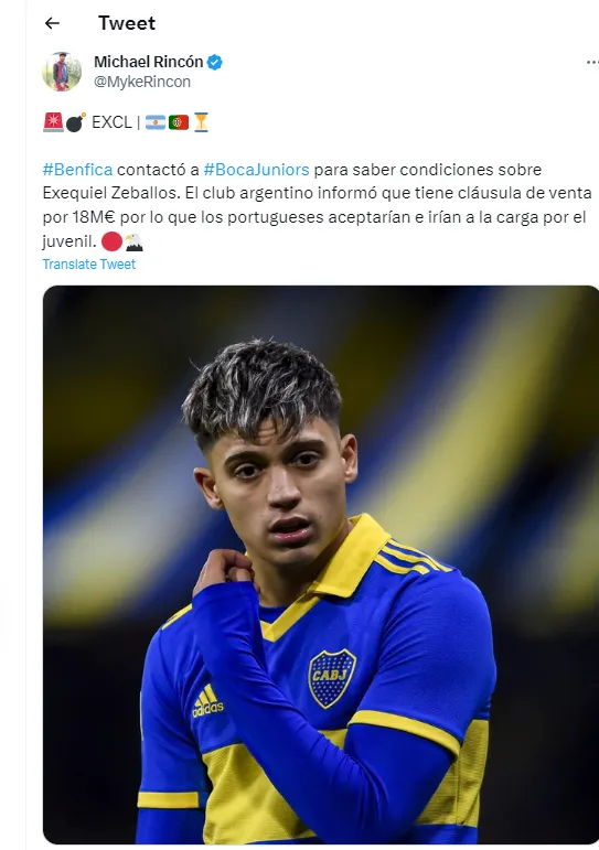A pesar de su inactividad, Exequiel despierta interés en Europa. Según contó el periodista Michael Rincón, Benfica de Portugal (que anunció a Ángel Di María) ya se contactó con Boca para conocer condiciones sobre Exequiel Zeballos. “El club argenitno informó que tiene una clásula de venta por 18 millones de euros por lo que los portugueses aceptarían e irían a la carga por el juvenil”, destacó el cronista. ¿Se viene la oferta?