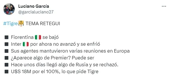 Pese a esto, la Viola se habría bajado de las negociaciones según indicó el periodista Luciano García. Además, resaltó que “pueden aparecer propuestas de la Premier League y una oferta de Rusia, que se rechazó”. Mientras tanto, el jugador disputa sus últimos partidos en la Liga Profesional y pelea por ser uno de los artilleros.