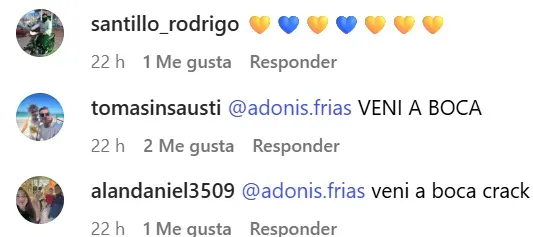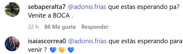 Adonis dejó su mensaje en la última publicación de La Bestia, y los fanáticos no pasaron por alto esto. En ese sentido, varios pidieron que venga al club. “Venite a Boca”, “¿Qué estás esperando? venite a Boca” y “Super necesario, tiene que venir ya”, fueron algunas de las respuestas que tuvo el comentario tanto en Instagram como en X (Twitter).