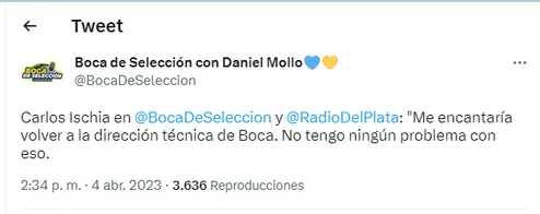 El que habló con Boca de Selección y levantó la mano para postularse como un posible candidato a sentarse en el banco de suplentes de La Bombonera fue el último entrenador que logró un título internacional (Recopa Sudamericana 2008) en el club: Carlos Ischia.
