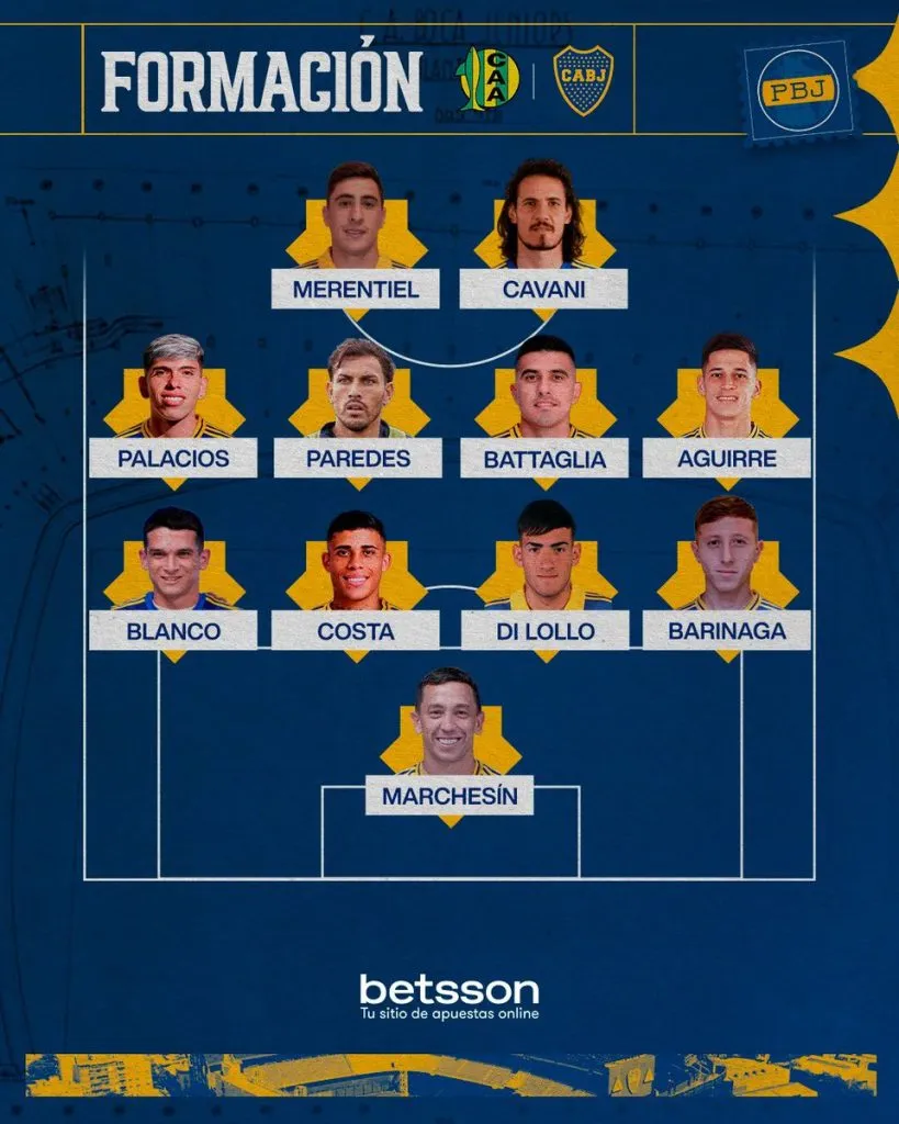 De esta manera, Boca formará contra Aldosivi de la siguiente manera: Agustín Marchesín; Juan Barinaga, Lautaro Di Lollo, Ayrton Costa, Lautaro Blanco; Brian Aguirre, Leandro Paredes, Rodrigo Battaglia, Carlos Palacios; Miguel Merentiel, Edinson Cavani.