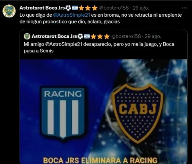 En los últimos meses se ha generado una importante popularidad en redes sociales con las predicciones sobre los resultados de Boca. Sin ir más lejos el amigo personal de Jorge Almirón, Giorgio Armas, ha sido uno de los tarotistas xeneizes que más aciertos ha tenido en el tiempo reciente. Sin embargo, no es el único astrólogo hincha del club de la Ribera.