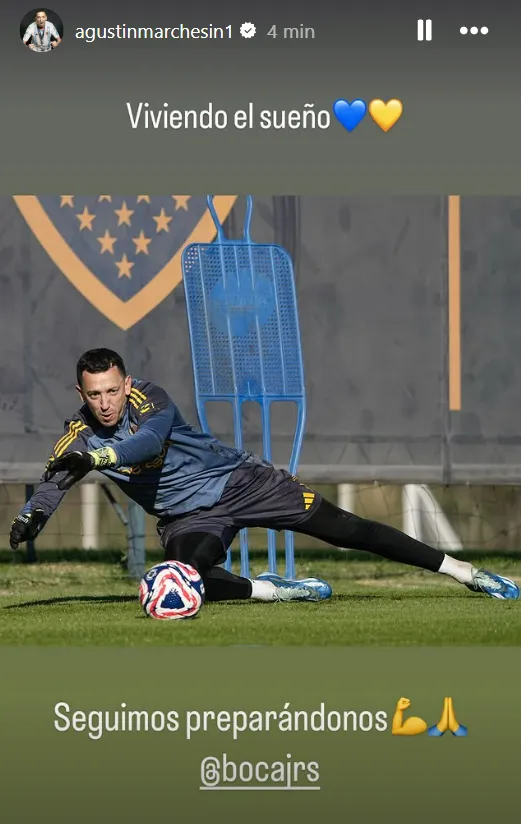 El ex Lanús, que desde su llegada se adueñó del arco y hasta fue uno de los más elogiados por el hincha. Con la vuelta de Romero, el ex Lanús, sumará una competencia más por los tres palos y en ese sentido, subió una historia en redes también entrenando. “Viviendo el sueño, vamos por más”, escribió acompañando a una foto suya en plena acción durante el entrenamiento.