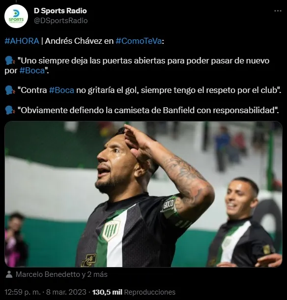 En una charla con “DSports Radio”, Chávez se refirió al encuentro de este domingo y fue claro con respecto a los objetivos que se puso Banfield. “No hace falta motivación para enfrentar a Boca. Sabemos que es de lo más grandes de Argentina. Motivación nos sobra para ir a ganarles“, aseguró.