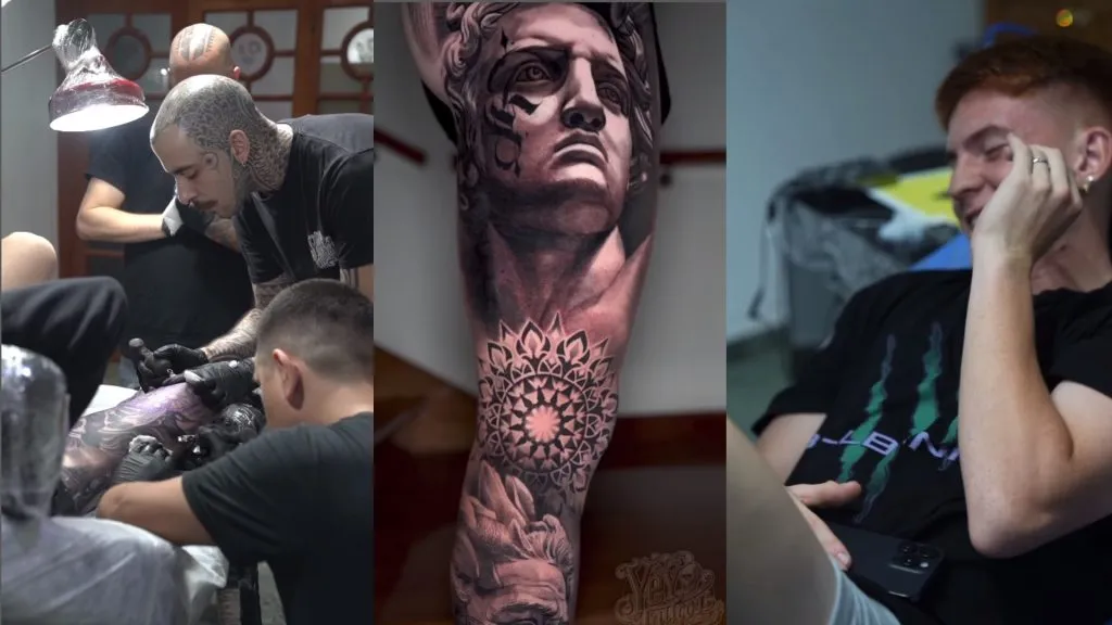 El lateral se lo hizo en un estudio especializado de Quilmes y mostraron el proceso de una de las sesiones de trabajo que tuvieron. En la publicación donde lo muestran se puede ver su pierna prácticamente cubierta con distintos dibujos y un total de tres tatuadores metiéndole tinta.