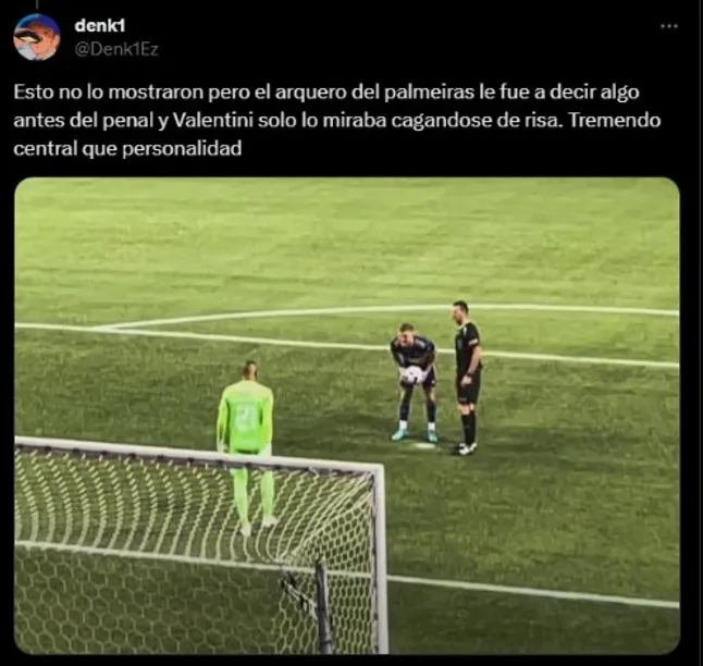 “Al medio” fue la frase de Nicolás dirigida para Weverton, arquero de Palmeiras, antes de ejectuar su penal. Por su parte, el brasilero hacía todo lo posible para distraer el hombre de Boca: “Fuerte al medio, fuerte al medio“. ¿Funcionó? Al parecer no. Valentini ejecutó a su izquierda y confirmó aún más la ventaja para su equipo.