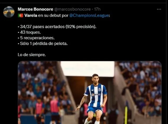 Tras salir de Boca por 13 millones de dólares, Alan Varela firmó contrato con el Porto de Portugal hasta mediados del 2028. A su vez, el martes 19 de septiembre, el volante tuvo su debut oficial en la UEFA Champions League como titular.