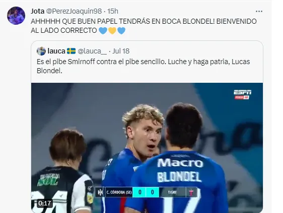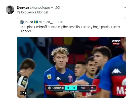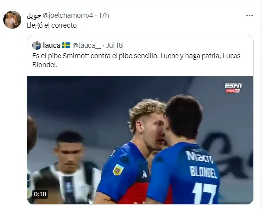 El video se volvió viral y el lateral se ganó la aprobación general de los hinchas, que lo llenaron de comentarios. “Ya lo quiero a Blondel”, “llegó el correcto”, “bienvenido al lado correcto” y “yo ya me enamoré”, fueron algunas de las expresiones en redes.