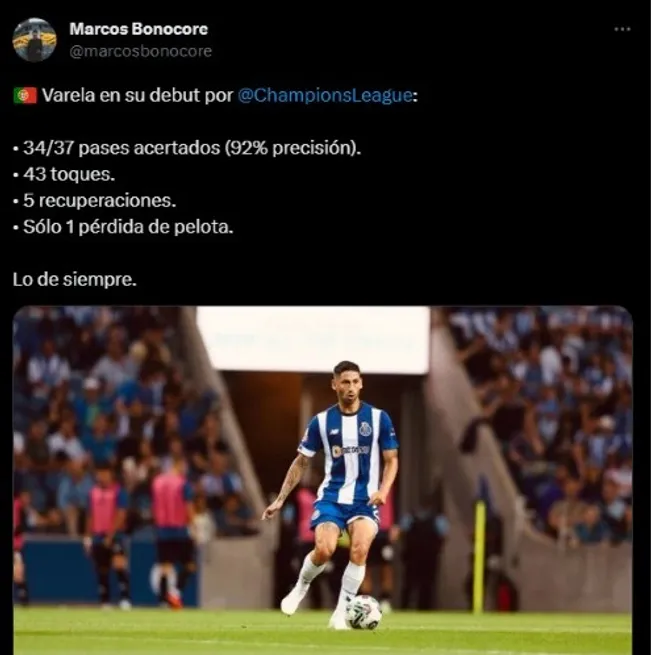 Tras salir de Boca por 9 millones de dólares más otros 3 millones en objetivos a cumplir, Alan Varela ya parece haberse asentado en el Porto y en el día de la fecha tuvo su primer partido como titular por la UEFA Champions League en lo que fue la fecha 1 correspondiente al Grupo H.