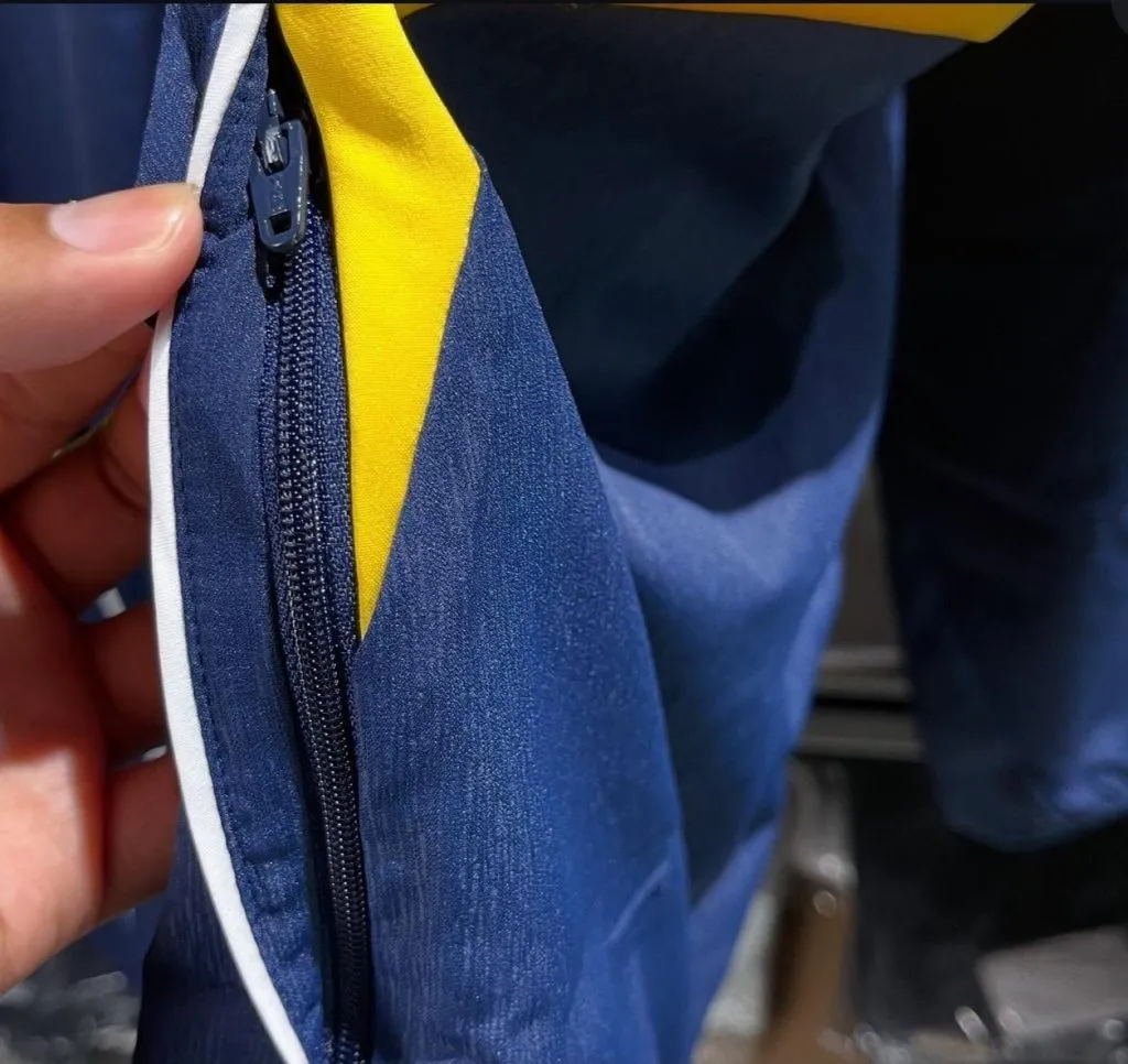 El usuario de X @davidwalter275, filtró en la red social lo que sería la próxima campera que lanzará Adidas al mercado. La misma es de color azul oscuro, con un template muy similar a la futura camiseta que lanzará la marca alemana. En la zona baja de la prenda habrá detalles en color amarillo. En la zona de los hombros, estarán las tres tiras características también de color amarillo y en donde habrá una gran novedad será en el escudo.