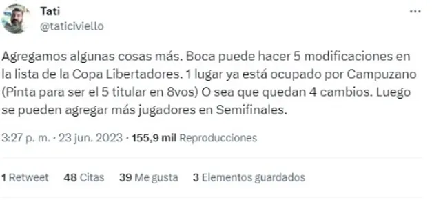 A partir de esto citado, se puede decir que el técnico xeneize pidió que el colombiano sea parte de la lista de la Copa Libertadores y hasta lo tendría pensado como posible titular para los octavos de final según Claudio Civello.