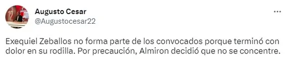 Según informó el periodista Augusto César, el futbolista de 20 años “no forma parte de los convocados porque terminó con dolor en su rodilla y por precaución, Almiron decidió que no se concentre“. Por el momento, el santiagueño se perderá el debut en la Libertadores en condición de local. Los hinchas, que lo ovacionaron en Brandsen 805, ya lo esperan una vez más.