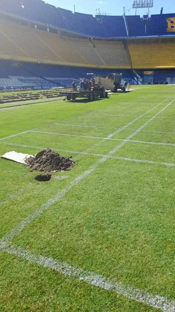 Los encargados de la labor específica empezaron marcando el terreno y levantando el pasto en algunos sectores exclusivos. La finalización de la obra llevará entre dos y tres meses, por lo tanto Boca debería cambiar la localía por algunos encuentros.