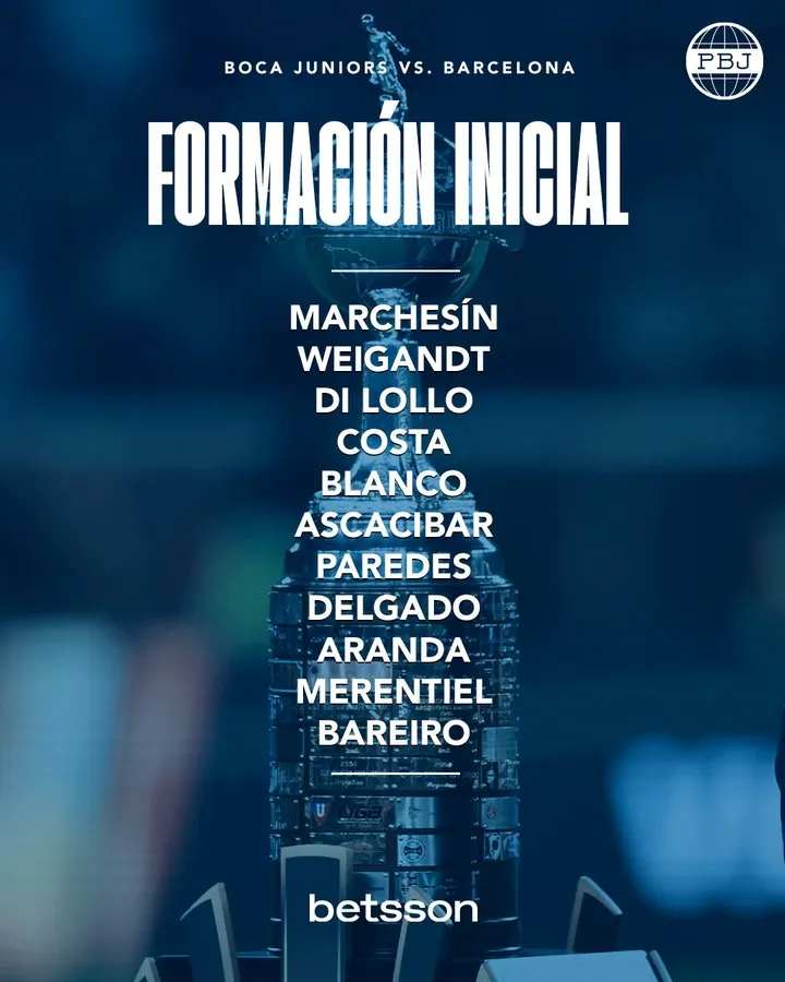 Así las cosas, el equipo será: Agustín Marchesín; Marcelo Weigandt, Lautaro Di Lollo, Ayrton Costa, Lautaro Blanco; Santiago Ascacibar, Leandro Paredes, Milon Delgado; Tomás Aranda; Miguel Merentiel, Adam Bareiro.