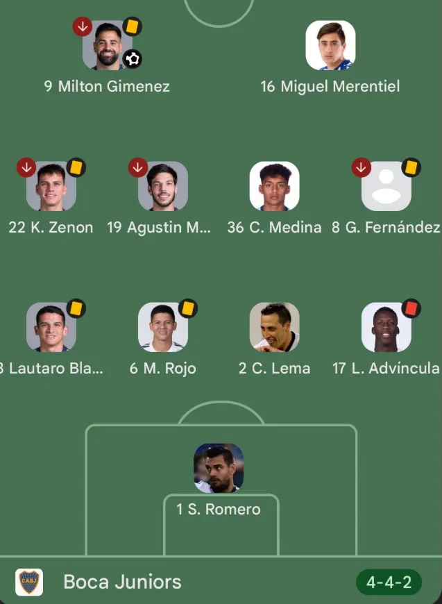 El 11 que salió esa noche en Boca fue: Sergio Romero; Luis Advíncula, Cristian Lema, Marcos Rojo, Lautaro Blanco; Pol Fernández, Cristian Medina, Agustín Martegani, Kevin Zenón; Milton Giménez, Miguel Merentiel.
