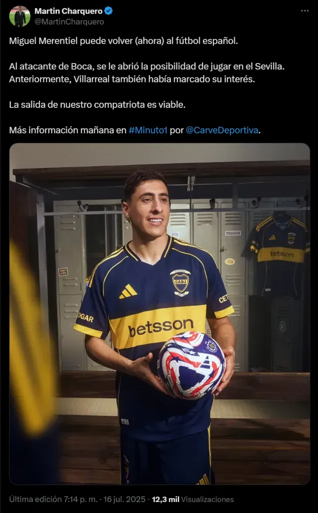 Aunque todavía no hubo una oferta formal, en Boca están enterados de los crecientes intereses que hay por Merentiel. Varios equipos sondearon al delantero para conocer su situación y en cualquier momento podría llegar una oferta a las oficinas del Xeneize.