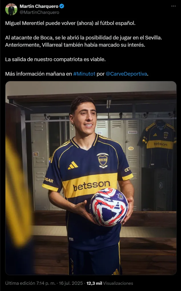 Aunque todavía no hubo una oferta formal, en Boca están enterados de los crecientes intereses que hay por Merentiel. Varios equipos sondearon al delantero para conocer su situación y en cualquier momento podría llegar una oferta a las oficinas del Xeneize.