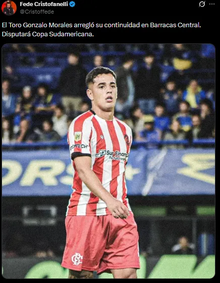 Barracas Central está detrás de varios integrantes del plantel que saben que no tendrán lugar en el equipo de la Ribera. Según reveló el periodista Federico Cristofanelli, Gonzalo Morales jugará en el Guapo en 2026.