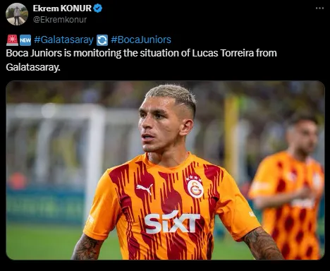 En el Xeneize ya piensan en una alternativa top y el nombre que aparece es el de Lucas Torreira. Según el periodista turco Ekrem Konur están analizando la situación del volante del Galatasaray, con contrato vigente hasta el 30 de junio de 2026.