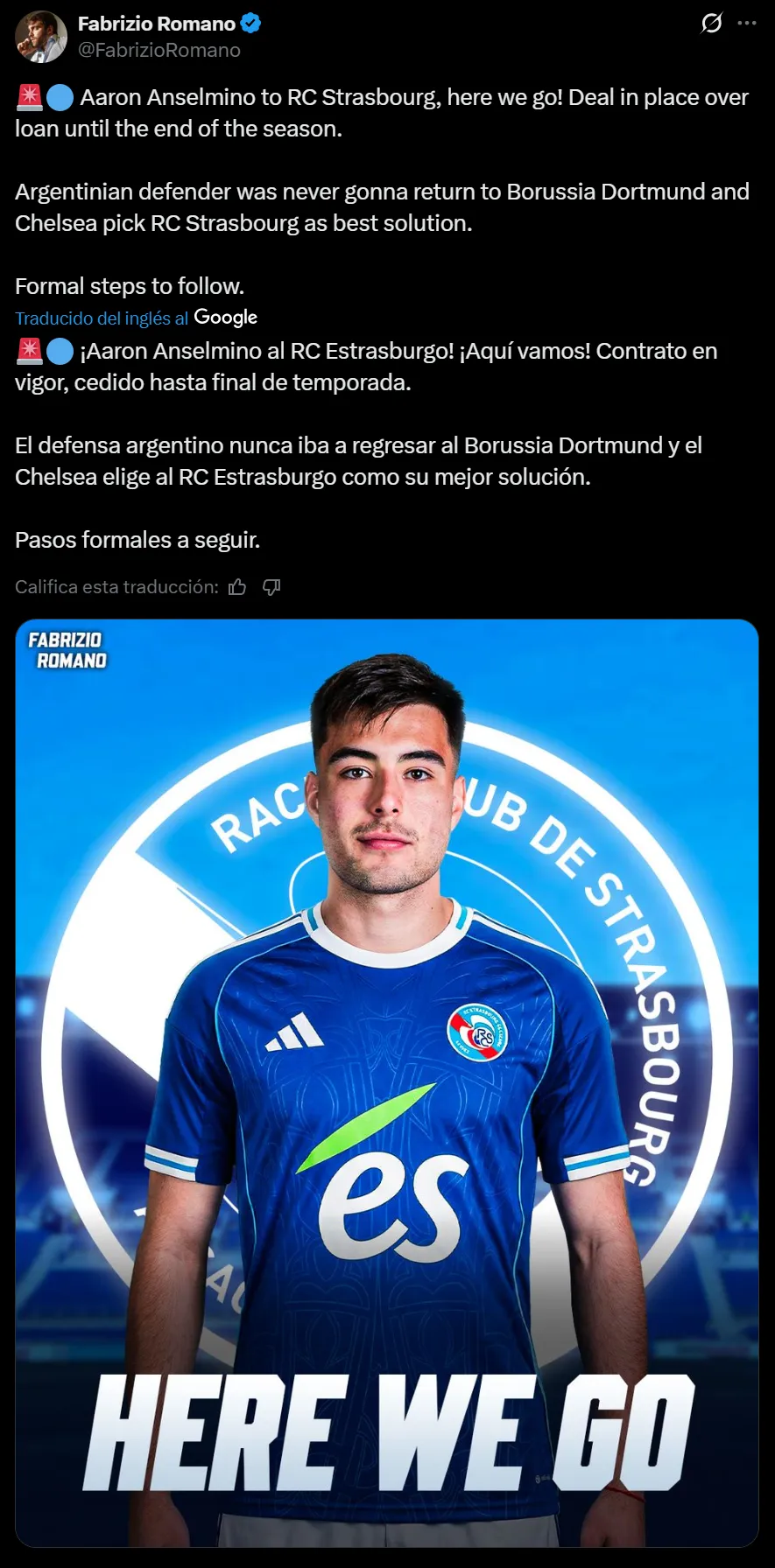 Y ahora, se confirmó que el club francés, del mismo propietario que el Chelsea, será el nuevo destino para el jugador de 20 años. Según informó el periodista Fabrizio Romano, está todo acordado para que Anselmino se convierta en refuerzo del Racing de Estrasburgo.