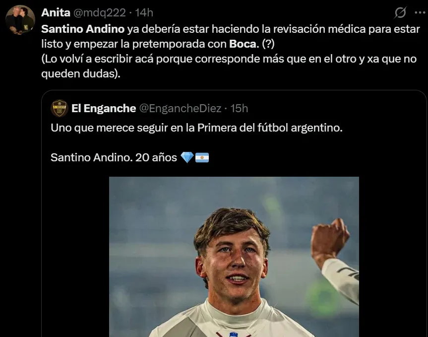 Los hinchas de Boca pidieron por la llegada de Santino Andino para el 2026