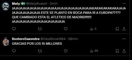 Los hinchas de Boca no tardaron en aparecer y reaccionar a la llegada del exfutbolista de la institución. “Gracias Verón“, “Gracias por los 15 palos“, “Muy bueno Europa“, “Está raro Turquía“, fueron algunos de los comentarios que dejaron en el tuit.