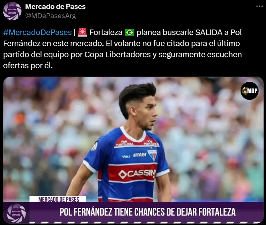 Finalmente, una vez que terminó la temporada en el fútbol argentino, Pol terminó marchándose libre, de nuevo. Semanas antes, el mediocampista había confirmado que su próximo destino era el Fortaleza de Brasil. Hoy, el mediocampista argentino no atraviesa un buen presente y el equipo brasileño tomó una inesperada decisión que descoloca totalmente al ex Boca.
