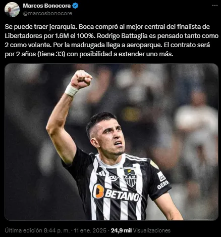 Boca sigue sumando refuerzos en este mercado de pases y el último de ellos llegó en la madrugada del domingo. Se trata de Rodrigo Battaglia, por quien el Xeneize abonará algo más de 1.6 millones de dólares por la totalidad de su ficha.