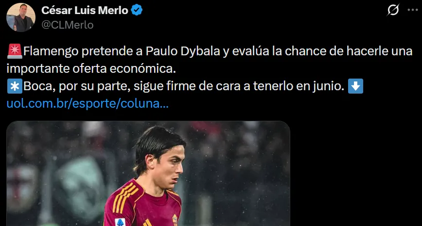 - Paulo Dybala es pretendido por Boca, pero en las últimas horas Flamengo se metió en la pelea.