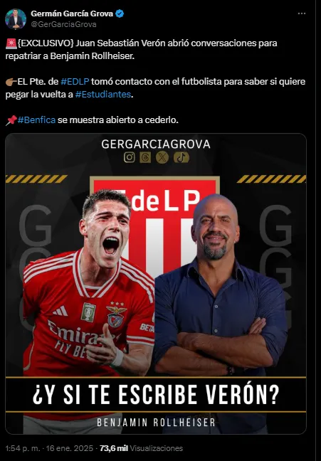 Benjamín Rollheiser tiene poco rodaje en el Benfica y a Gago le interesa tenerlo en Boca. Sin embargo, es muy difícil traerlo ya que directamente el futbolista pretende seguir en Europa. Según reveló el periodista Germán García Grova de Bolavip, Juan Sebastián Verón tomó contacto con el extremo izquierdo para intentar llevarlo a Estudiantes.
