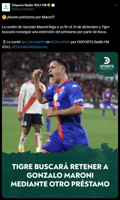 Boca recibirá a una gran cantidad de jugadores de regreso de sus préstamos en 2025. Cada año, el Xeneize cede a jugadores jóvenes o sin lugar en el primer equipo a distintos clubes de Argentina o el exterior. En la extensa lista de quienes deben volver está Gonzalo Maroni, que jugó en Tigre durante el último año.