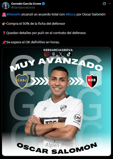 Se trata de Óscar Salomón, quien jugó el último año en Platense y se le buscaba equipo para que lo cedieran nuevamente. Según reveló el periodista Germán García Grova de Bolavip, el defensor tiene todo encaminado para jugar en Newell’s de manera definitiva.
