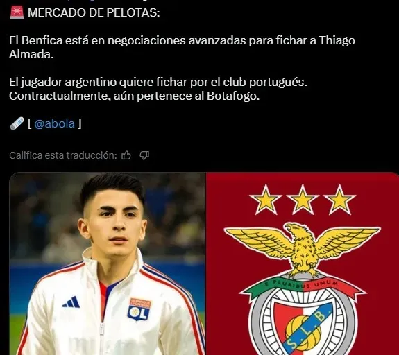 Según informó el medio A Bola, el enganche de la Selección Argentina está en la carpeta del cuadro portugués. Cabe recordar que, para la próxima temporada, Thiago Almada deberá regresar a Botafogo tras su préstamo de un año en el Lyon de Francia.