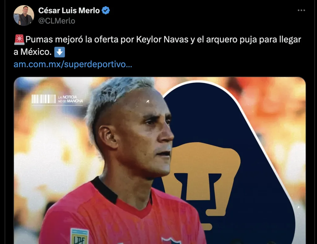 Pero ahora hubo una nueva noticia que puede cambiar el futuro de Navas y de Romero. Ya que, según informó el periodista César Luis Merlo, Pumas mejoró la oferta para sacar al costarricense de Newell´s y el arquero puja por su salida.