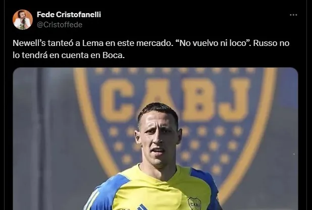 Sin embargo, se reveló la postura del jugador ante esta posibilidad. Y el periodista Federico Cristofanelli informó la tajante frase de Lema frente a la chance de regresar a su antiguo equipo: “No vuelvo ni loco“.