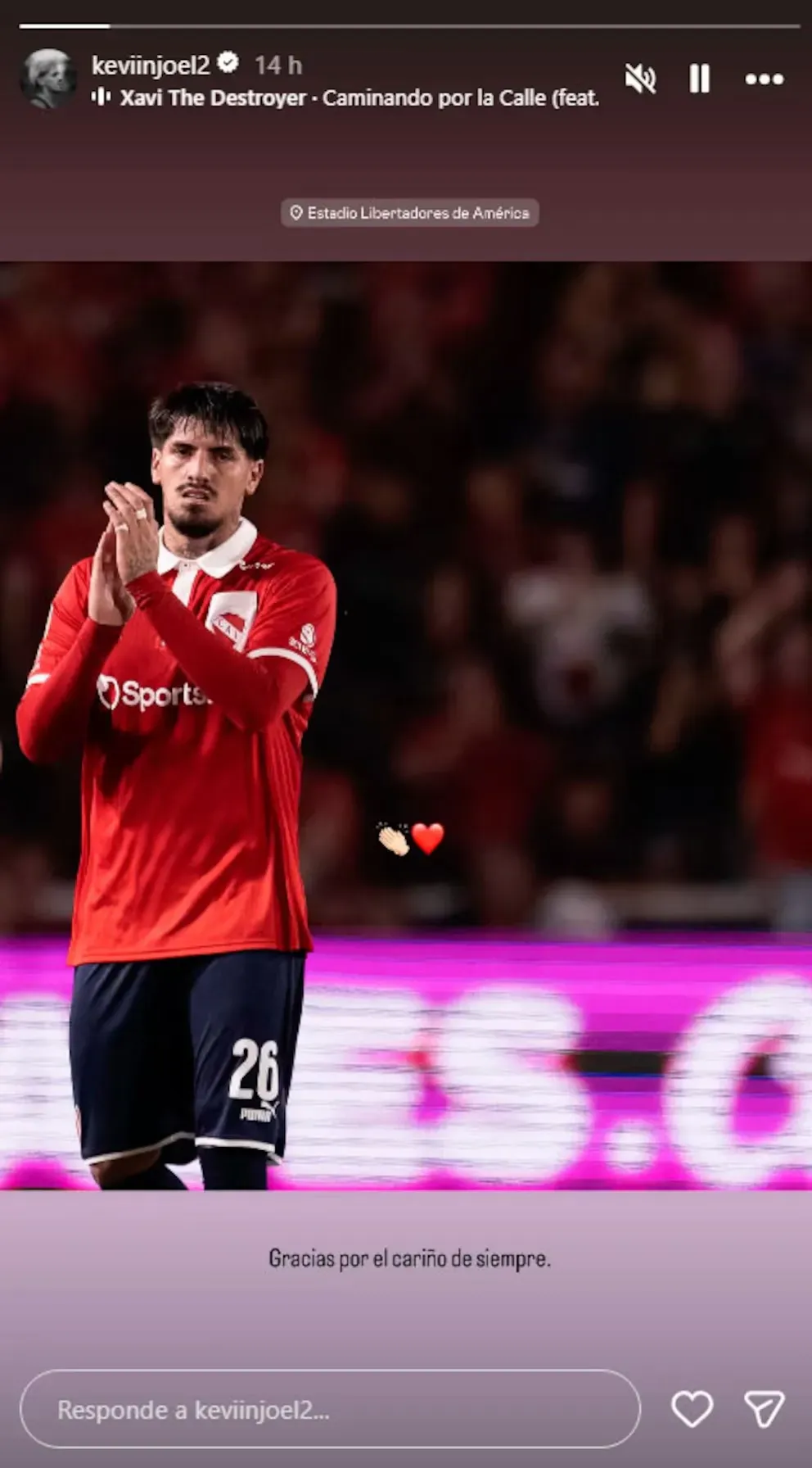 El defensor aún no tiene asegurada su continuidad luego de haber sido sondeado por varios equipos. Y en medio de las especulaciones, el defensor subió una particular historia tras el último partido que disputó el Rojo hace una semana atrás. “Gracias por el cariño de siempre”, escribió junto a una foto suya con la camiseta de Independiente.