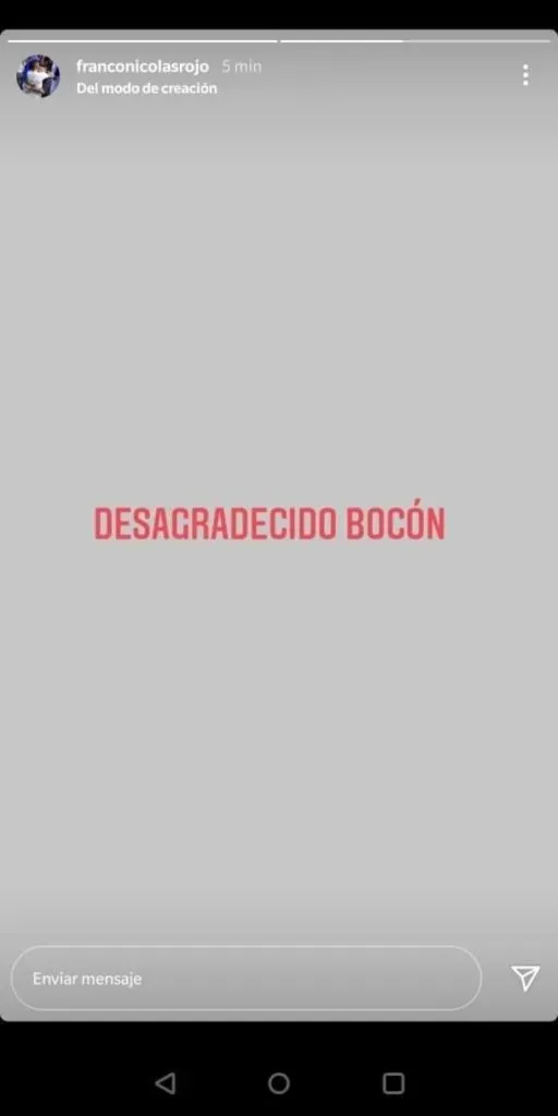 Franco Rojo, hermano del futbolista de Boca, publicó algunos mensajes contra el Pincha en momentos puntuales. El primero de ellos fue cuando Marcos eligió al Xeneize sobre el equipo platense y respondiendo a críticas de Juan Sebastián Verón, también en Instagram por ese entonces. “Desagradecido, bocón“, sentenció Franco Rojo con las dos palabras sobre un fondo blanco, haciendo alusión a los colores del Pincha.