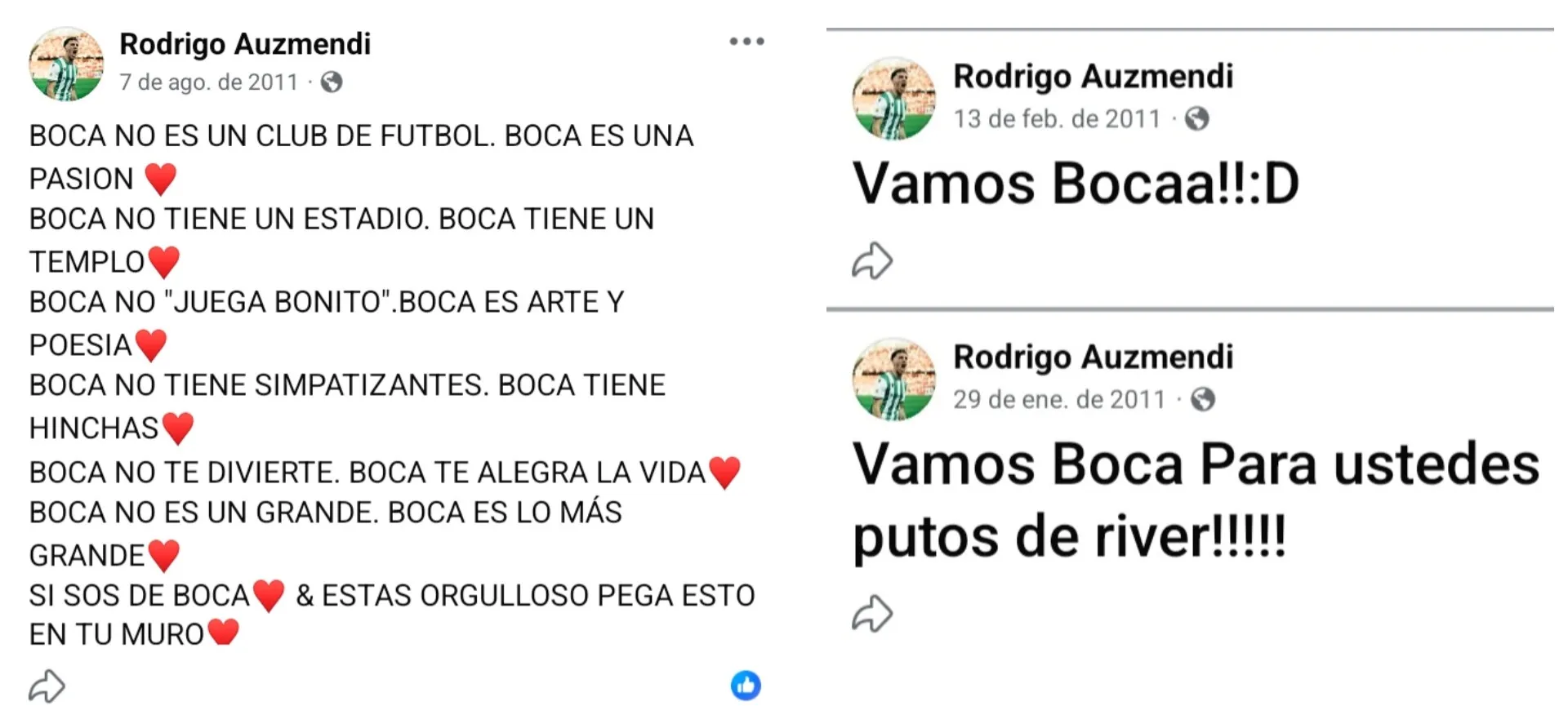 A la espera de la definición de estas negociaciones, aparecieron algunos posteos del año 2011 en los que el atacante, con pasado en Uruguay y Honduras, mostró su cariño por el cuadro de la Ribera. “Para vos River” o “Vamos Boca” fueron algunas de sus publicaciones. Muchos años después, aparece la chance de vestir la azul y oro.