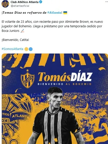 El conjunto de Villa Crespo ya le dio la bienvenida al volante de 23 años y brindó más detalles de esta negociación. Al igual que en su paso por el Mirasol, Díaz llegará a préstamo por un año sin cargo y con opción de compra. Por otro lado, su nuevo club ya le dio la bienvenida y se pudo ver al flamante refuerzo con los colores del equipo que milita en la Primera Nacional.
