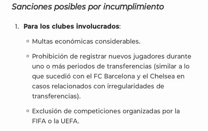 - Exclusión de competencias organizadas por la FIFA, como por ejemplo, el Mundial de Clubes