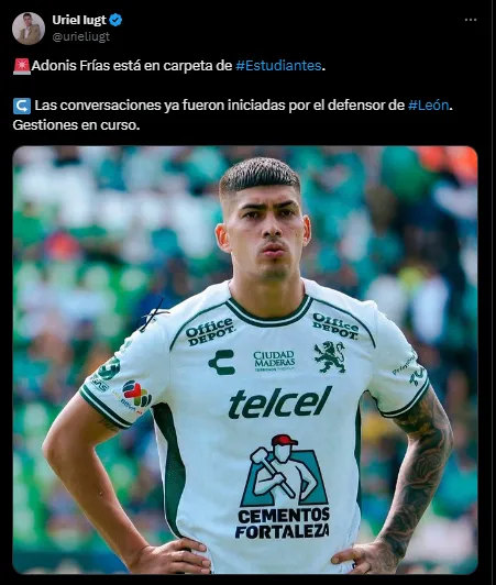 Ahora, Juan Román Riquelme podría ir en busca de un primer marcador central para ser alternativa de Nicolás Figal. El nombre apuntado es el de Adonis Frías pero, según reveló el periodista Uriel Ugt de DSports Radio, Estudiantes de La Plata también estaría tras sus pasos.
