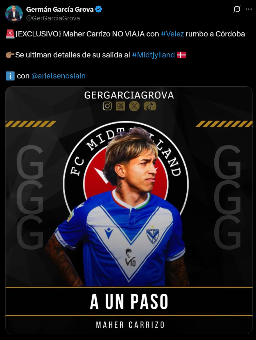 Maher Carrizo apareció en el radar de Boca luego de que haya rechazado a River. Aunque la operación no parecía ser fácil, el Xeneize tenía en mente una estrategia para concretar su llegada, pero el jugador está cada vez más lejos. Y es que desde Dinamarca quieren al juvenil y le presentaron una jugosa oferta a Vélez.