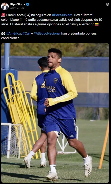 Tras una década en el Xeneize y un final que estaba anunciado hace meses, Fabra tendría intenciones de volver a Colombia y en los últimos años de su carrera buscará la mayor continuidad posible.
