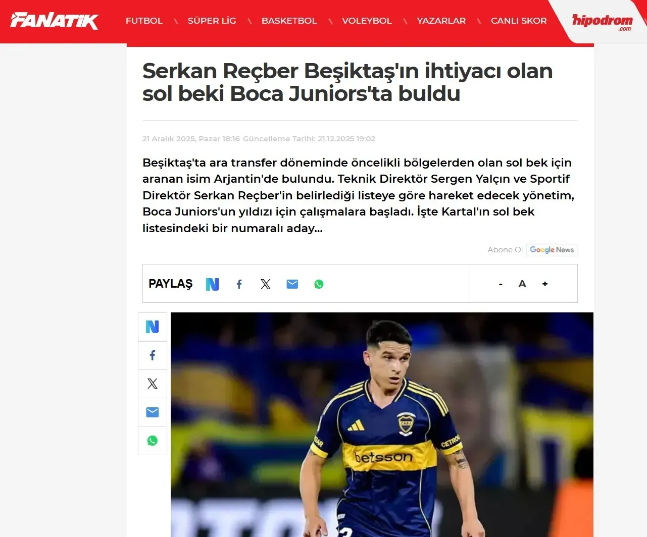 El cuadro turco, que se quedó sin posibilidad de disputar copas internacionales, puso primera en el armado de su grupo para la recta final de la temporada y algunos medios de aquel país confirmaron el interés por el lateral izquierdo del “Xeneize”.