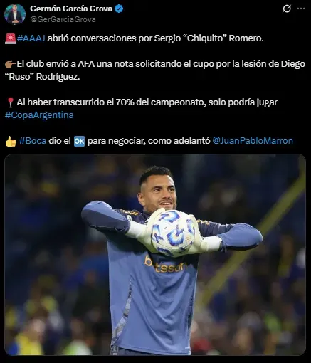 Como ya se jugó el 70% del Torneo Clausura, Romero solamente podría estar en la Copa Argentina, donde el equipo de la Paternal debe jugar semifinales contra Belgrano. Teniendo en cuenta su alta efectividad atajando penales, sería fundamental en una hipotética definición. Su contrato con Boca vence a fin de año y todo indica que no le renovarán, por eso podría irse ahora mismo.